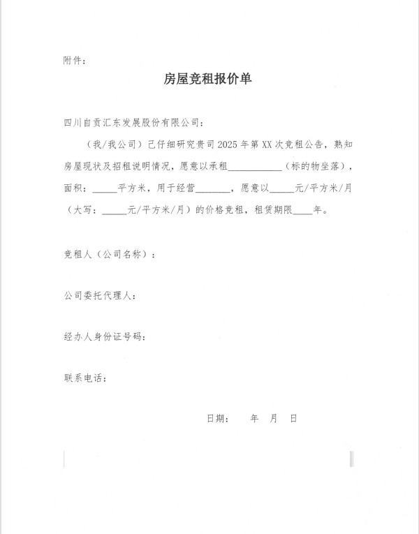 (我/我公司)己仔细研究贵司2025年第XX次竞租公告,熟知房屋现状及招租说明情况,愿意以承租 (标的物坐落),面积: 平方米,用于经营 ,愿意以 元/平方米/月(大写: 元/平方米/月)的价格竞租,租赁期限 年。