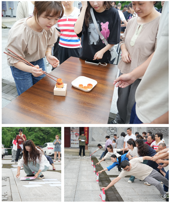 “月饼叠叠”考验传递与搭建技巧,“玉兔送月”靠身体协作运瑜伽球,“水果消消”拼记忆与观察,“水中捞月”借长杆协作取水,趣味拔河环节更是点燃全场热情……传统文化体验与趣味互动模式融合下,各队参赛职工火力全开,风采尽显。